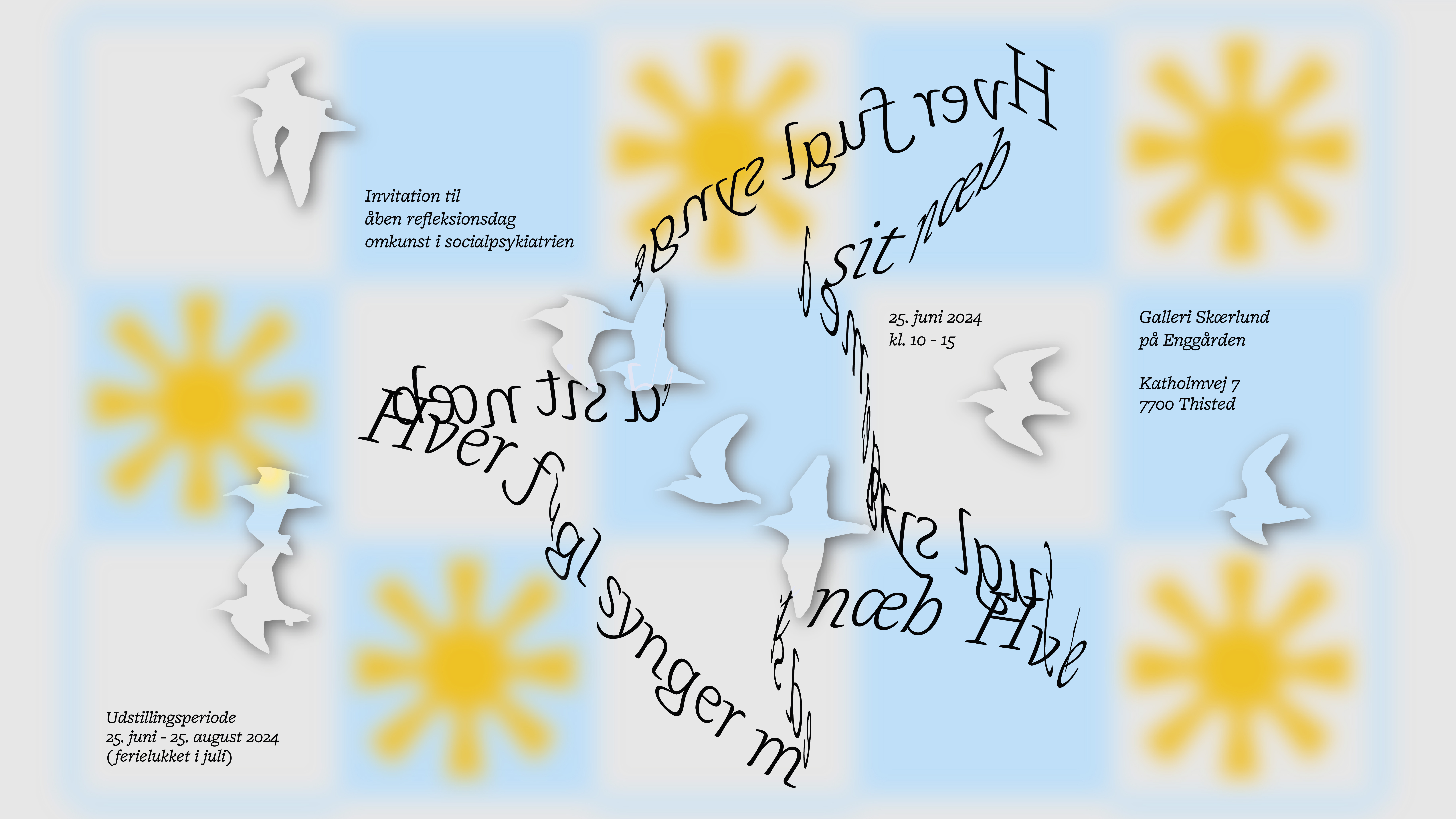 Som afslutning på workshop-serien Hver fugl synger med sit næb med samtidskunstnere Sóley Ragnasdóttir og Inga Gerner Nielsen på Enggårdens kreative værksted Skærlund, afholdes denne 1-dags event. Formålet er at skabe et refleksionsrum for at dele erfaringer omkring at arbejde med samtidskunst i socialpsykiatrien.Dagen vil give indsigt i kunstneriske processer bag workshop-serien, hvor kunstnerne afholdte en række mønster og arkiv workshops med afsæt i deres egen praksis og Skærlunds historiske arkiv af billedkunst og skabte et spændende møde med medlemmernes egne kreative processer.