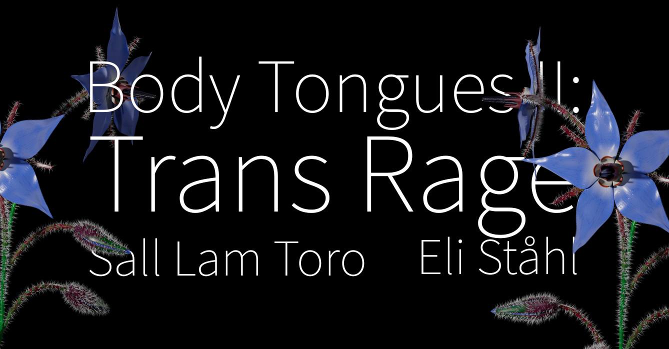 Through conversation, collective reading, writing exercises and body movement, this workshop aims to create a space for investigating rage from a trans perspective. Using both the personal experiences of the group as well as writings by Susan Stryker and others as a starting point, we ask if rage is foundational to being trans? We investigate rage as both a suppressed and privileged affect. How may we nurture, move, and build action from it?