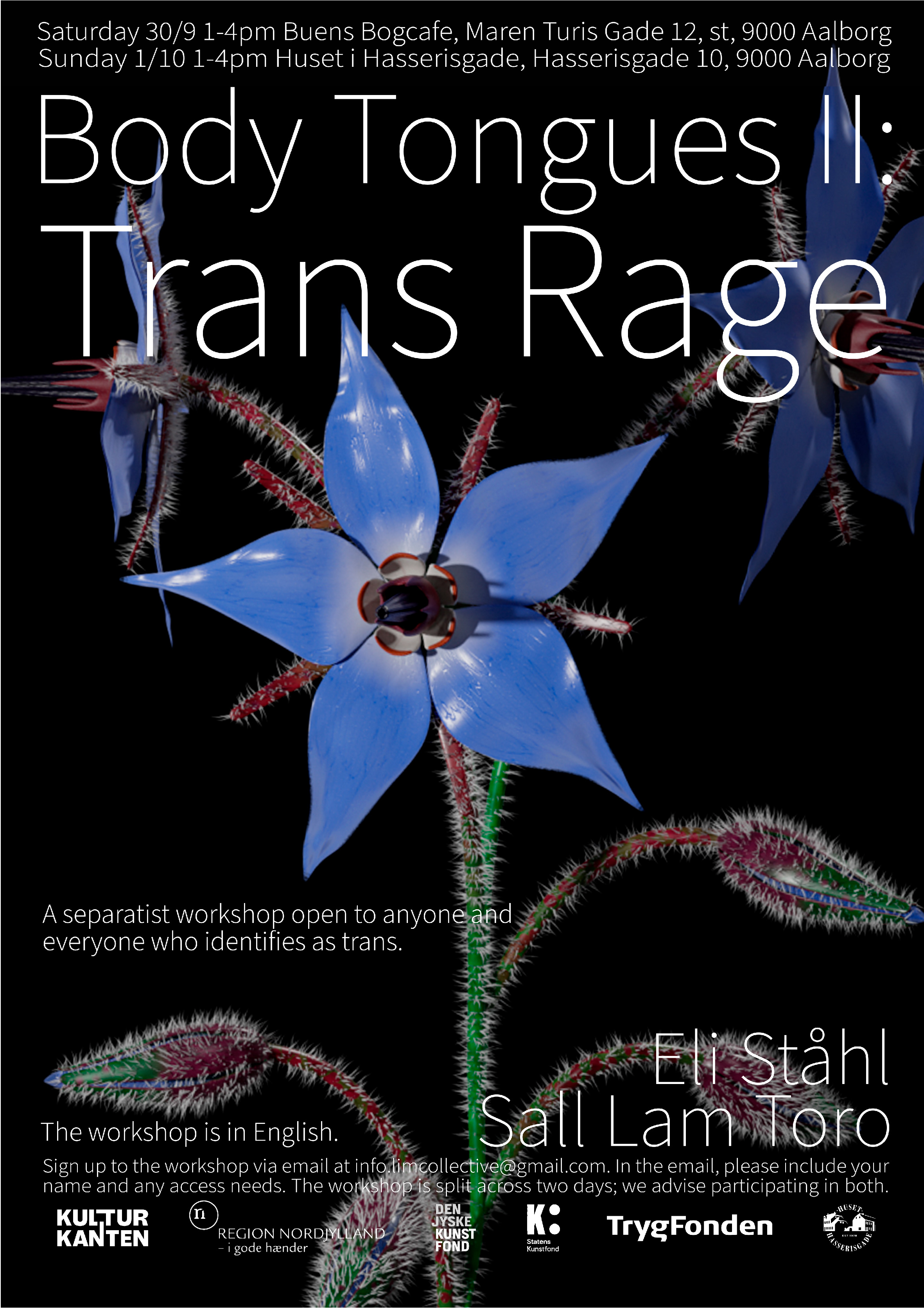 Workshoppen er separatistisk og åben for alle, der identificerer sig som trans. Der forventes ikke et forudgående kendskab til emnet Workshoppen er todelt og vi opfordrer til at deltage i begge dage. Workshoppen foregår på engelsk.